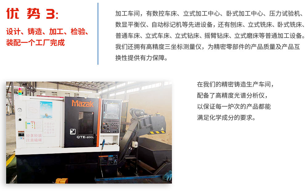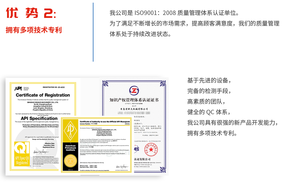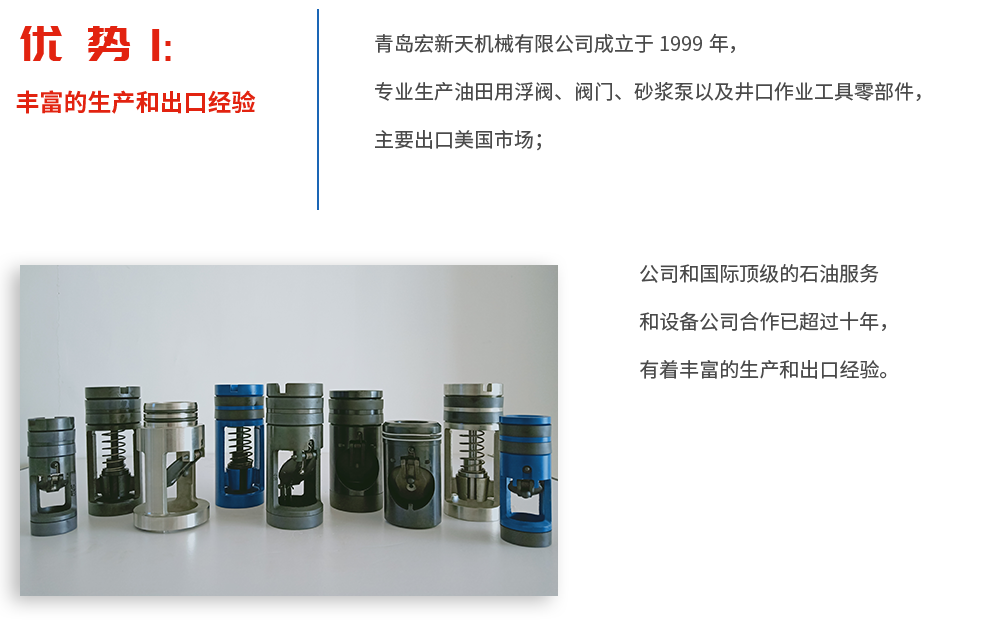 青岛新广宏实业有限公司和青岛宏新天机械有限公司分别成立于1999年和2007年,两者同属同一法人主体,主要从事石油机械设备及配件的研发、生产、销售于一体的现代化企业。公司主营产品有:油田用钻杆浮阀、浮箍浮鞋、阀门、砂浆泵、油田井口作业工具零部件以及各种铸造配件(包括汽车配件、工程机械配件、食品机械配件、建筑工程配件、泵阀配件等)等。产品材料包括灰铁、球铁、碳钢、合金钢、不锈钢、铝青铜等。我们采用沙铸工艺、精密铸造工艺以及锻造来生产毛坯,然后由数控机床或加工中心完成精密加工。有些产品直接采用型材(如钢板、钢管和棒材)下料然后进行精加工。其中钻杆浮阀系列产品的技术质量水平居国内前列。我公司和国际知名的石油服务和设备公司合作已超过20年,有着丰富的生产和出口经验。 公司拥有先进的加工设备,精密铸造生产线,还拥有高精度三坐标测量仪、光谱仪、拉力试验机、水压测试仪、硬度计、...
