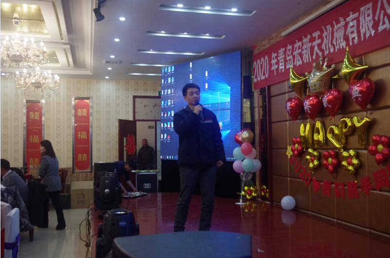 豪情欢歌辞岁月,喜气开篇迎新年,2020年1月11下午,青岛宏新天机械有限公司2020年迎新晚会隆重举行,公司总经理韩小广携全体员工100余人欢聚一堂,共度联欢。